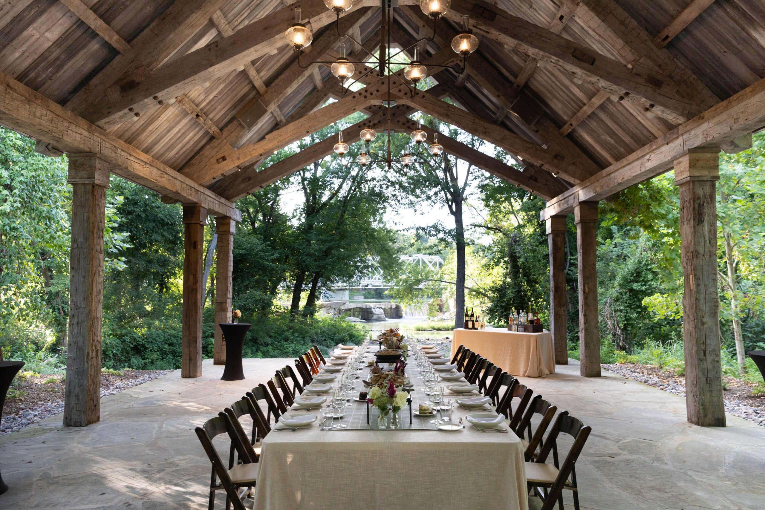The Chapel is an open-air venue set along the banks of the Finley River just across from The Ozark Mill. The structure was modeled after many historic chapels you might stumble upon in the older pockets of our region and crafted from reclaimed materials. After tying the knot, walk across the Historic Riverside Bridge to your wedding reception or cocktail hour inside The Mill. Or, utilize the century-old structure that spans the Finley River as your celebration spot.